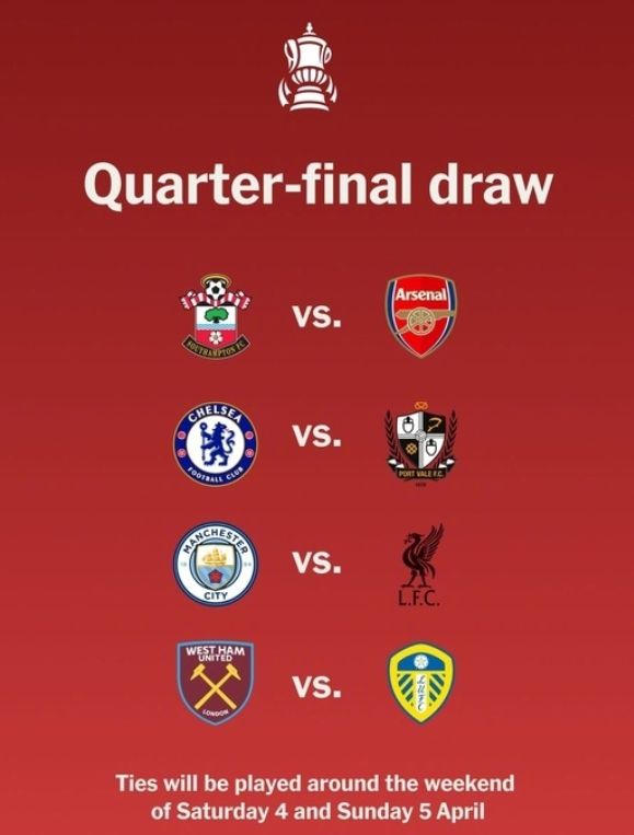 国际比赛日之后,几大豪门将迎来足总杯1/4决赛,曼城对阵利物浦的比赛将在4月4日19:30开打,4月5日还有切尔西对阵维尔港、南安普敦对阵阿森纳和西汉姆对阵利兹联三场比赛。因为国家队赛事中,阿森纳几位大将提前归队,原因是有伤在身,所以此役主帅会进行更多的轮换,所以也需要防备平局的可能,毕竟对于阿森纳来说守住英超榜首的位置更重要,再就是欧冠晋级也重要,主帅是需要做出取舍的。