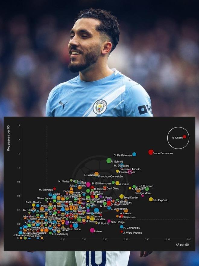 如果在横向对比欧洲7大主流联赛,谢尔基每90分钟能创造1.11次重大机会,这项数据直接登顶全欧第一。在曼城这套极致传控的体系里,能把创造机会的效率做到全欧顶尖,足以见得谢尔基的天赋有多炸裂。而他的每90分钟预期助攻数据,同样位列欧洲七大联赛所有中场球员之首。